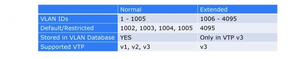 Расширенный диапазон VLAN включает в себя номера с 1006 по 4095. Его можно использовать на старых устройствах только в случае, если они поддерживают VTP v3. Если вы используете VTP v3 и расширенный диапазон VLAN, то должны отключить поддержку VTP v1 и v2, потому что первая и вторая версии не могут работать с VLAN, если они имеют номер больше 1005.