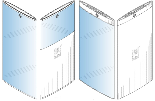 Ещё один смартфон, описанный в патентной документации, оборудован единственным фронтальным экраном без боковых рамок. У этого устройства лицевая камера размещена на верхней кромке корпуса. Сзади установлена одинарная камера.