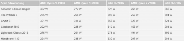 Наконец, что касается энергопотребления. Старший Ryzen 9 3900X, несмотря на большее число ядер, потреблял меньше Core i9-9900K. В свою очередь Ryzen 7 3700X оказался чуть более «прожорливым», нежели его предшественник Ryzen 7 2700X, несмотря на то, что TDP данных процессоров составляет 65 и 95 Вт соответственно.