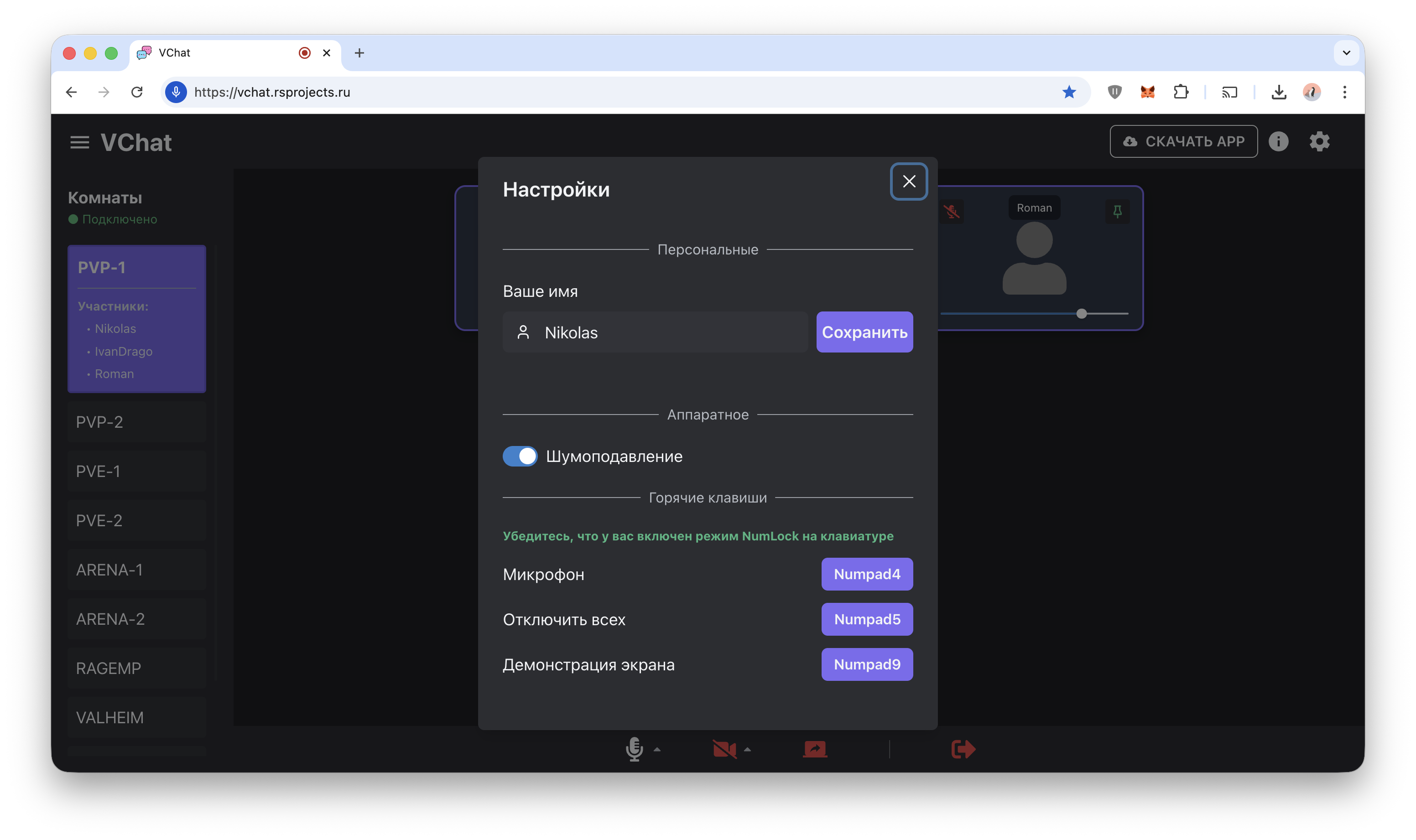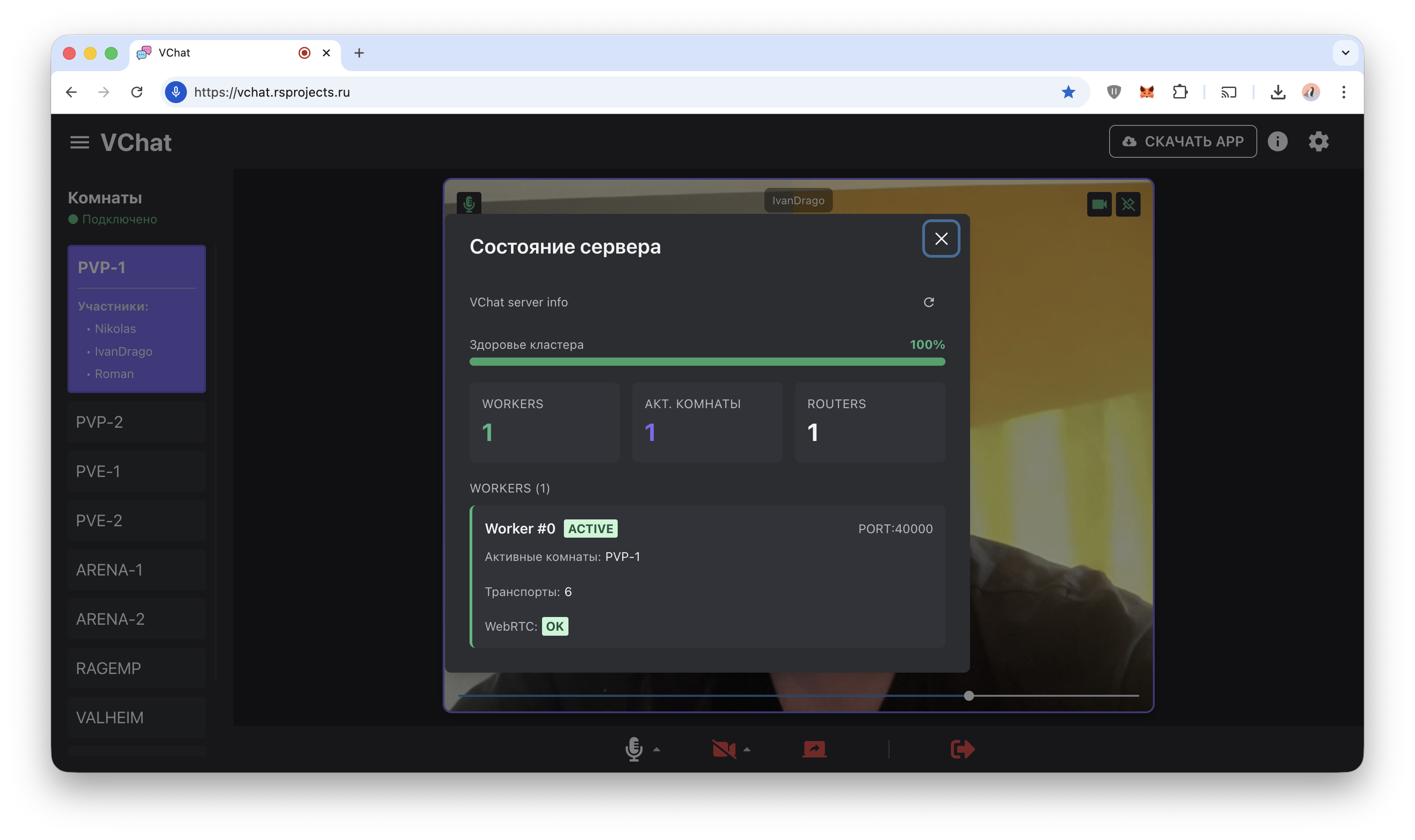 Рад представить вам мою поделку — простенький WebRTC-чат. «Поднимается» тремя командами.