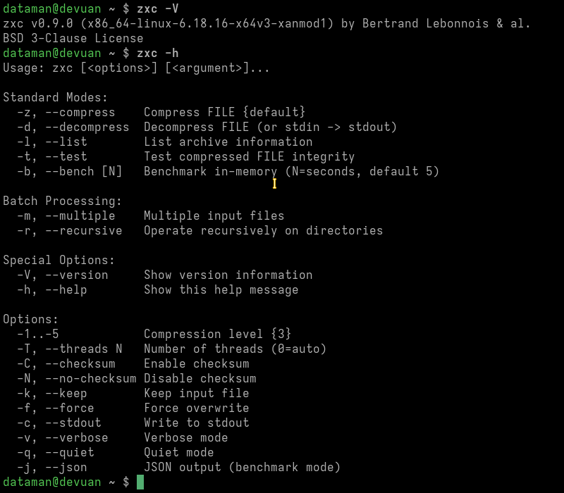 • zxc_create_dctx(), zxc_free_dctx() ΠΈ zxc_decompress_dctx() для дСкомпрСсии;